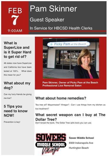 About Us! Pam opened Picky Pam at the Beach in 2012. We have enjoyed over 30,000 happy customers. As a entrepreneur, Pam created a team of lice experts and developed the Coco Loco Lice Treatment Products, recently featured on Walmart.com. Coco Loco is the best way to treat lice on the market.